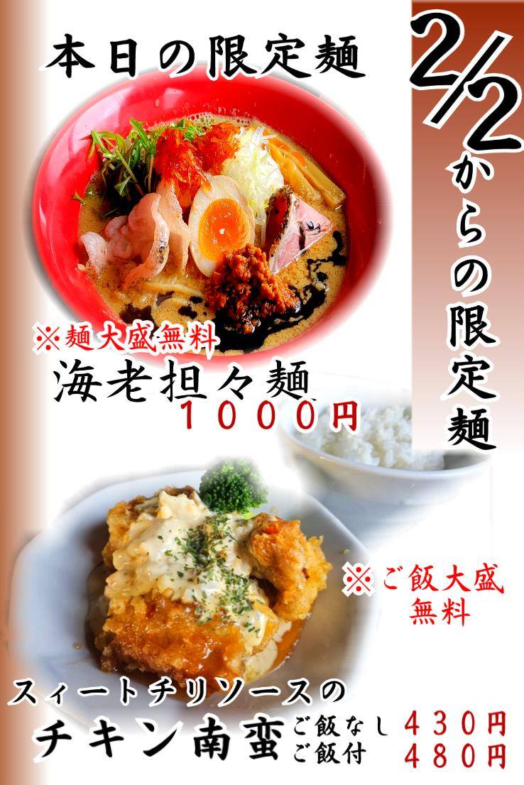 限定メニュー(2026/2/2~)のお知らせです
